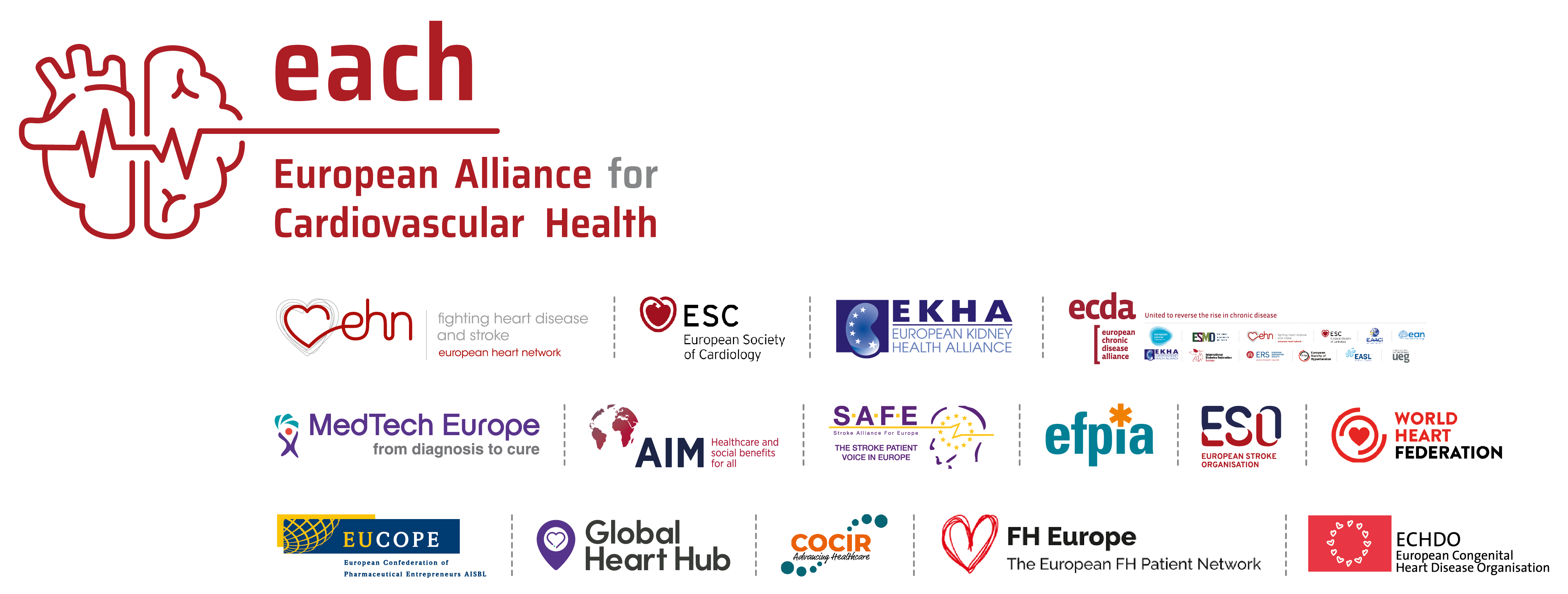 Concerned about the current situation, the European Society of Cardiology, the European Heart Network and MedTech Europe invited other European organisations with a strong interest in cardiovascular health to join efforts to raise awareness of the burden of CVD.
