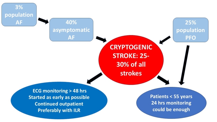 CS may occur after an undiagnosed subclinical paroxysmal AF in a relevant percentage of patients (up to 30%).