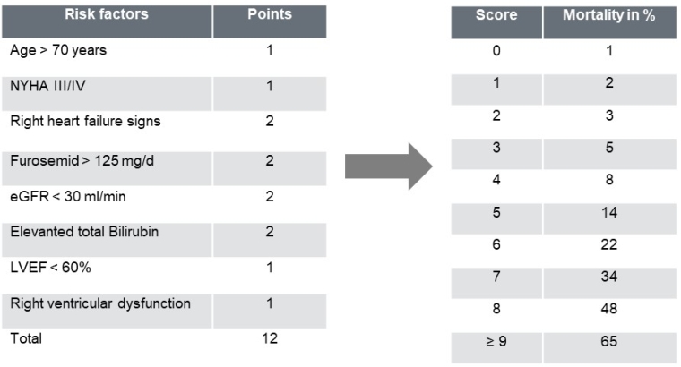 TR manifests with impaired functional capacity and dyspnoea on exertion, as well as peripheral oedema, ascites, gastrointestinal symptoms and right heart failure, and in the advanced stages, consecutive renal and liver dysfunction [9]. The first therapeutic measure consists of the initiation of diuretic treatment.