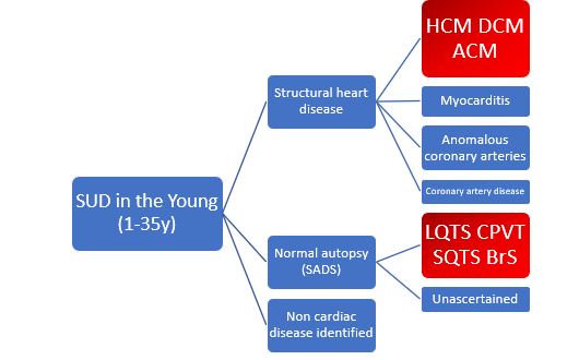 Firstly, families should be counselled about the expected benefits and potential outcomes of genetic investigations prior to testing. In cases where the deceased is the proband and a postmortem diagnosis is established, targeted genetic testing may be performed directly after autopsy or deferred until first-degree family members have been clinically evaluated. The identification of a pathogenic variant may facilitate genetic cascade testing in the family to identify at-risk individuals with no current clinical features or incipient abnormalities.