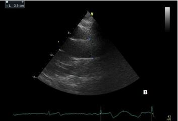 We present a case of a 42-year-old practicing competitive cycling and running for 8 hours per week. He was admitted to our Center for Sports Cardiology for a complete clinical assessment, including physical examination, resting ECG, ambulatory ECG monitoring, and transthoracic echocardiography (TTE) because of uncommon premature ventricular beats (PVBs) during the recovery step of an exercise testing performed for pre-participation screening. The athlete has no relevant prior medical history, no cardiovascular risk factors, or syncope. Family history was negative for coronary artery disease or sudden cardiac death. Physical examination was normal, and 12-lead ECG revealed common training-related findings, including bradycardia and incomplete right bundle branch block. The echocardiographic examination was performed according to the current standards(5).