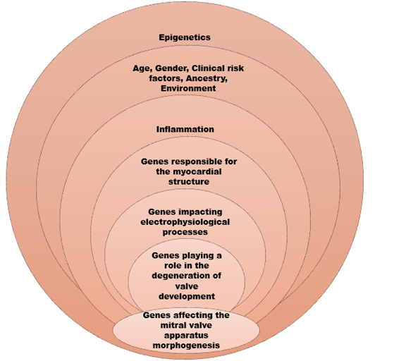 The arrhythmic mitral valve complex (AVMP) is defined by the presence of MVP (with or without MAD), combined with frequent and/or complex ventricular arrhythmias (VA) in the absence of any other well-defined arrhythmic substrate. There are two main phenotypes of the AVMP: the severe degenerative mitral regurgitation (MR) and the severe myxomatous MVP independent of MR severity (1,2,3).