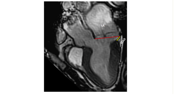 The presence of MAD should be detected as well. It may manifest at various locations on the mitral annulus, but it carries an increased risk of VAs when observed at the posterior LV wall. Occasionally, MAD is associated with a distinct mid-systolic to late-systolic spike on the lateral mitral annulus, as detected by Doppler. To measure MAD's length, the parasternal long-axis view at end-systole is employed, defining it as the distance between the mitral annulus and the systolic bulge of the ventricular myocardium (typically ranging from 5–10 mm in long-axis view) (5,6).