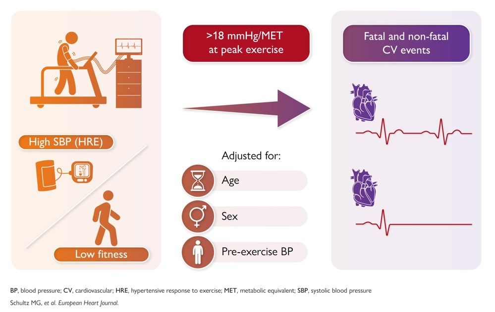 In the EXERTION study, Schulz and colleagues evaluated the response of over 12,000 individuals undergoing a Bruce Protocol exercise treadmill test. The baseline characteristics and outcomes were extracted from the administrative databases. Results included competing risk analyses, sex differences and subanalysis of those without prior cardiovascular diseases, pre-existing hypertension and blood pressure lowering medications.